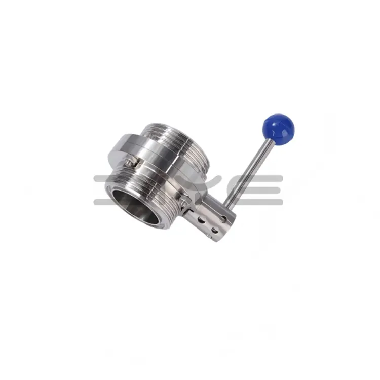 DIYE VALVE-k fabrikatutako hari sanitarioko tximeleta-balbulak kalibre txikiko eta presio baxuko lan-baldintza higienikoetarako bereziki diseinatutako fluidoen on-off kontroleko osagaiak dira. Hodiekin konexio azkarra egiten dute harizko konexio diseinu baten bidez, izkinarik gabeko egitura higieniko bat, funtzionamendu erraza eta zigilatzea fidagarria duena.